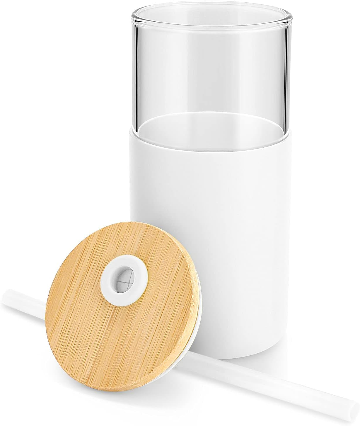 16 Oz Glass Tumbler with Straw and Bamboo Lid, Iced Coffee Cup Reusable, Smoothie Cups, Tumbler with Silicone Protective Sleeve - BPA Free