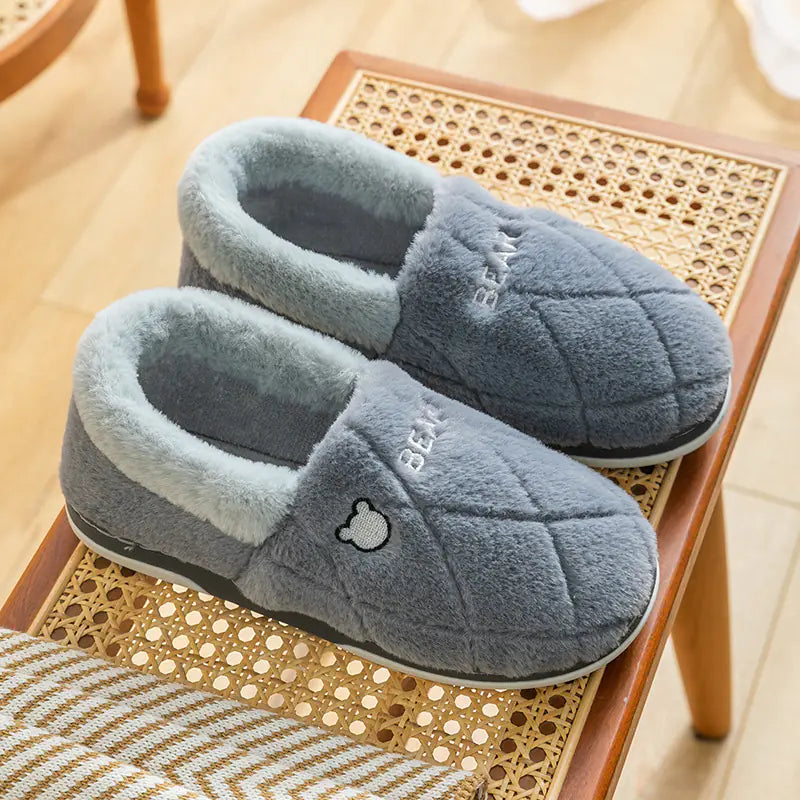 Cute Bear Head Plush Cotton Slippers - Cozy Winter Home Footwear