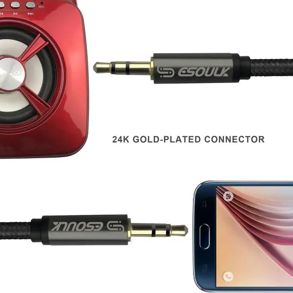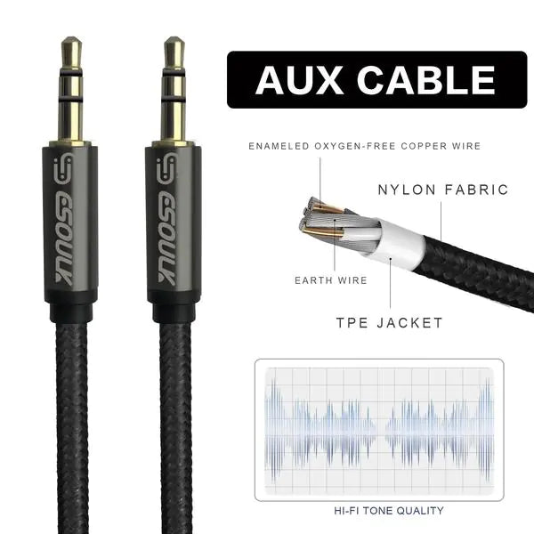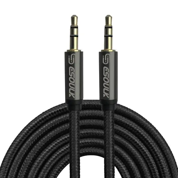 Esoulk 3M [10ft] Nylon Fabric Tangle-Free Male To Male 3.5mm Auxiliary Cable Black