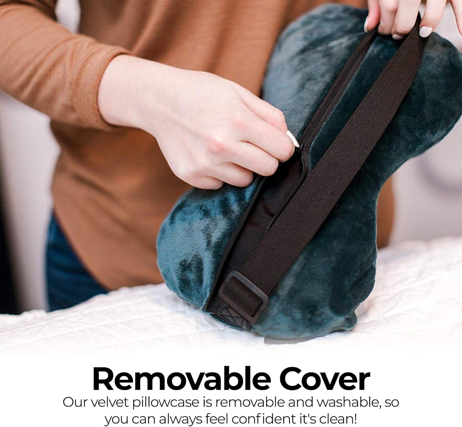 Our velvet pillowcase is removable and washable, so you can always feel confident it's clean!