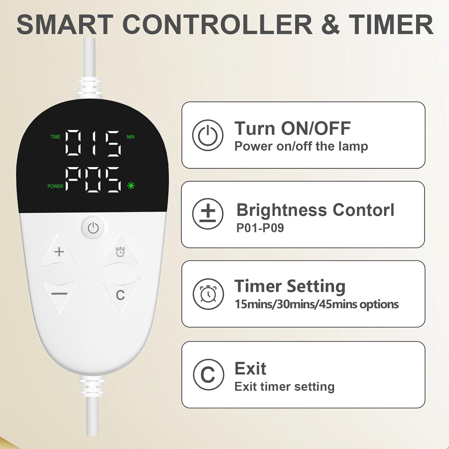• Portable & Safe Infrared Light Therapy Our red light lamp features quick-release threaded connections for easy setup and a timer controller that’s simple to use and energy-efficient. The low voltage design prevents overheating, ensuring a safe and reliable experience. Whether at home, in the office, or on the go, you can enjoy red light therapy anytime, anywhere