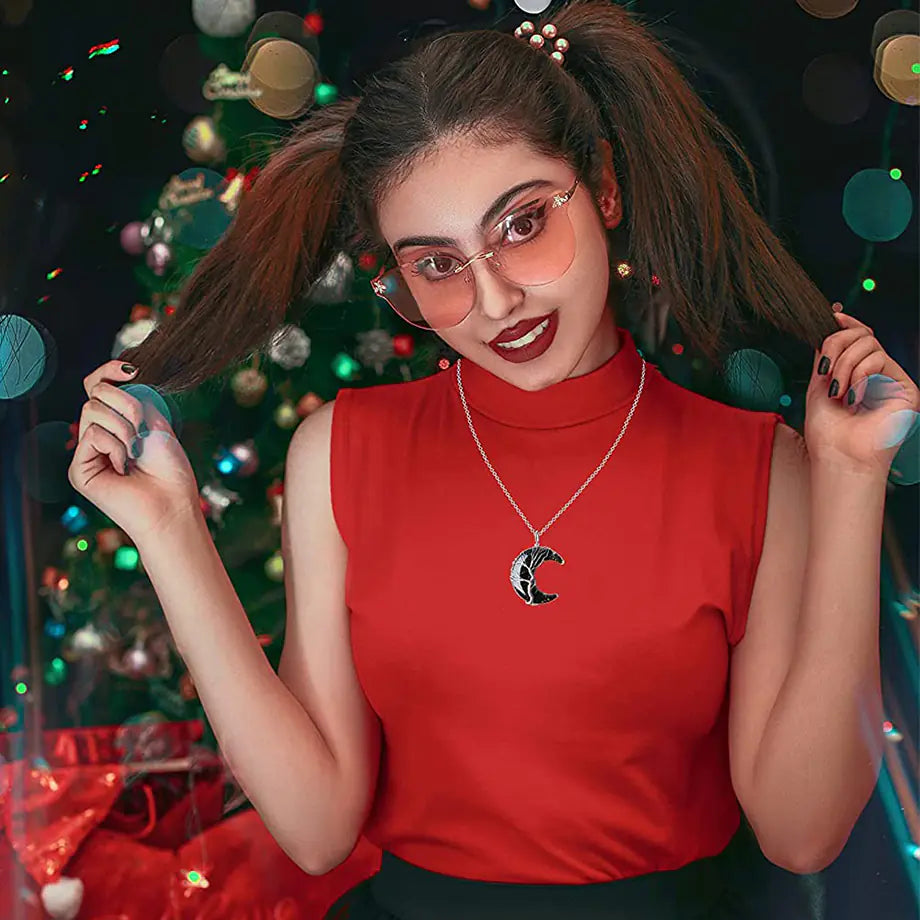 Tree of Life Moon Pendant - Geometric Alloy Necklace with Stainless Steel Chain