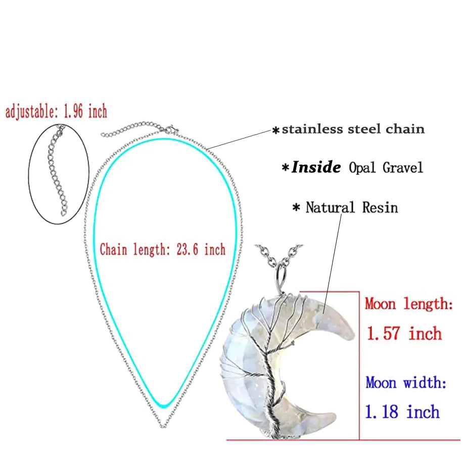 Discover the beauty of our stunning Tree of Life Gravel Moon Pendant, elegantly paired with a durable stainless steel chain. This unique piece is not just a necklace; it is a symbol of connection, growth, and the intricate web of life.