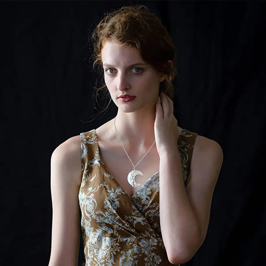 Stunning Tree of Life Moon Pendant with geometric design. High-quality alloy construction, electroplated finish, stainless steel chain. Symbol of growth & connection.
