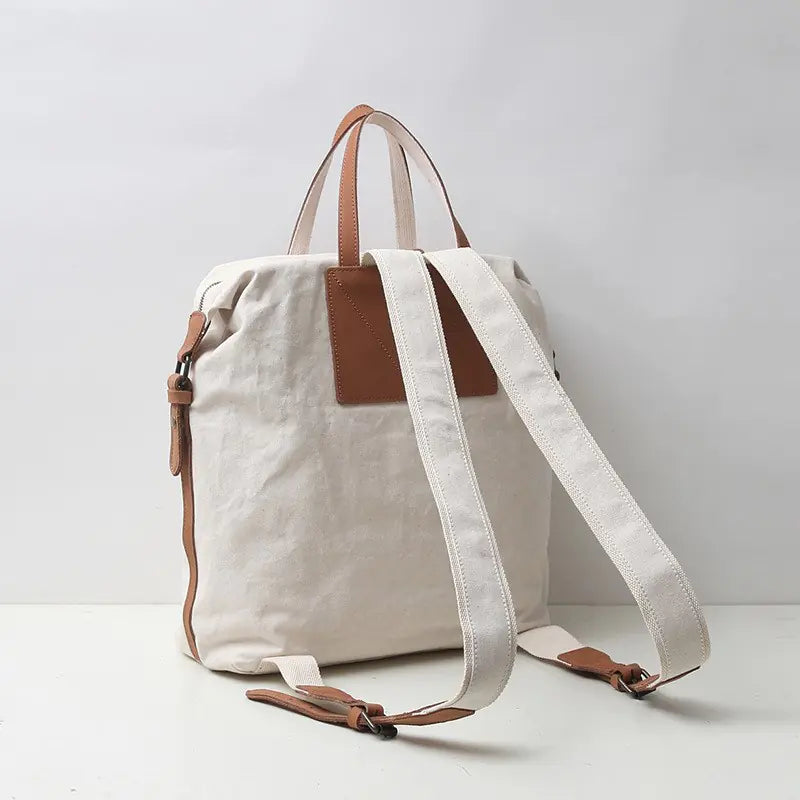 Premium Women's Canvas Leather Backpack - Stylish Travel & Work Bag